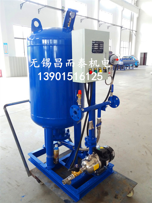 產(chǎn)品概述:DY系列定壓補水裝置由囊式壓力罐、水泵、控制箱、底架、壓力感應(yīng)裝置、管道閥門等組合而成,是一種兼有升壓、調(diào)節(jié)、儲水、供水等多種功能的常用供水設(shè)備。用途:●用于生產(chǎn)、消防、生活系統(tǒng)加壓供水,一般稱之為囊式自動給水裝置。●用于采暖、空調(diào)系統(tǒng)中作為穩(wěn)壓膨脹補水設(shè)備使用,一般稱為囊式落地式膨脹水箱。工作原理:定壓補水裝置設(shè)備采用系統(tǒng)靜壓作為膨脹水箱內(nèi)的設(shè)計初始壓力水頭,采用保證系統(tǒng)內(nèi)熱水不汽化的壓力作為膨脹水箱內(nèi)動行終端壓力水頭。初始運行時首先啟動補水泵向系統(tǒng)及氣壓罐內(nèi)的水室中充水,系統(tǒng)充滿后多余的水被擠進膠囊內(nèi)。因為水的不可壓縮性,隨著水量的不斷增加,水室的體積也不斷的擴大而壓縮氣室,罐內(nèi)的壓力也不斷的升高。當壓力達到設(shè)計壓力時,通過壓力控制器使補水泵關(guān)閉。當系統(tǒng)內(nèi)的水受熱膨脹使系統(tǒng)壓力升高超過設(shè)計壓力時,多余的水通過安全閥排至補水箱循環(huán)使用,當系統(tǒng)中的水由于泄露或溫度下降而體積縮小,系統(tǒng)壓力降低時,膠囊中的水被不斷壓入管網(wǎng)補充系統(tǒng)的壓降損失,當系統(tǒng)壓力至設(shè)計允許的最低壓力時,通過壓力控制器使補水泵重新啟動向管網(wǎng)及氣壓罐內(nèi)補水,如此周而復(fù)始。