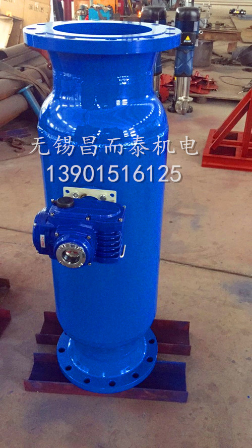自動(dòng)排污過濾器主要由優(yōu)質(zhì)碳鋼筒體、特殊結(jié)構(gòu)的不銹鋼楔形濾網(wǎng)、電動(dòng)執(zhí)行機(jī)構(gòu)及排污裝置所組成。當(dāng)過濾器工作時(shí),電動(dòng)執(zhí)行機(jī)構(gòu)引導(dǎo)蝶閥處于開啟狀態(tài),水流由入口進(jìn)入過濾器,經(jīng)過濾網(wǎng)過濾到出口。當(dāng)過濾器需要排污時(shí),關(guān)閉蝶閥,打開電動(dòng)排污閥,水流經(jīng)濾網(wǎng)前半段過濾,部分水流由出口流入系統(tǒng),剩余水流由濾網(wǎng)后半段外側(cè)流入內(nèi)側(cè),經(jīng)排污口排出,起到反向自動(dòng)沖洗濾網(wǎng)的作用。這樣整個(gè)沖洗過程系統(tǒng)可正常運(yùn)行,無(wú)需停機(jī)。