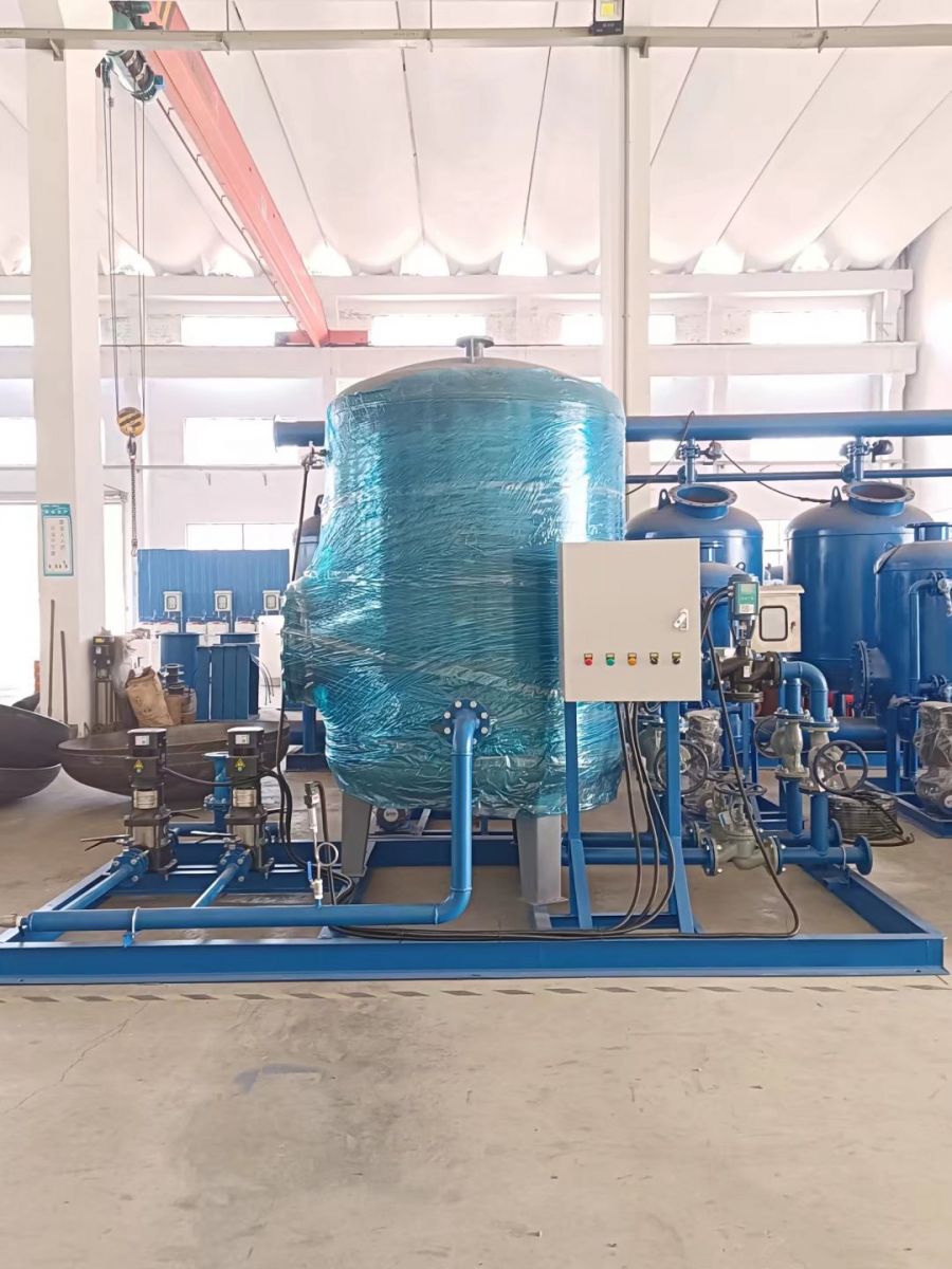 板式換熱機(jī)組,為換熱機(jī)組的一種型號(hào),其特點(diǎn)是采用板式換熱器,在相同壓力損失情況下,其傳熱系數(shù)比管式換熱器高3-5倍,占地面積為管式換熱器的三分之一,熱回收率高。設(shè)備由板式換熱器、智能溫控裝置、智能電控裝置、循環(huán)泵、補(bǔ)水泵、穩(wěn)壓膨脹水箱、補(bǔ)(凝)水箱、過(guò)濾器、閥門(mén)、儀表、傳感器、配管底座等組成。