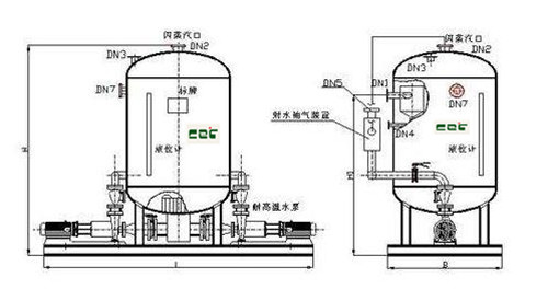 閉式凝結(jié)水回收器是由凝結(jié)水罐、凝結(jié)水泵、汽蝕消除裝置、激波換能器、液位傳感器和控制柜組成。