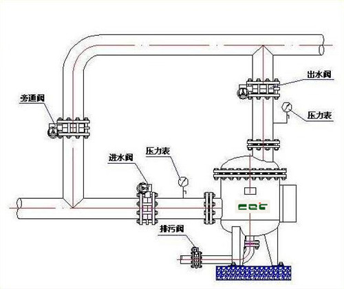 ①排污率:新系統(tǒng)初次使用時,應每8小時反沖洗2~3次。正常運行后,當進出水口壓差達到0.04~0.08Mpa(或根據(jù)系統(tǒng)設置壓差)時進行反沖洗。