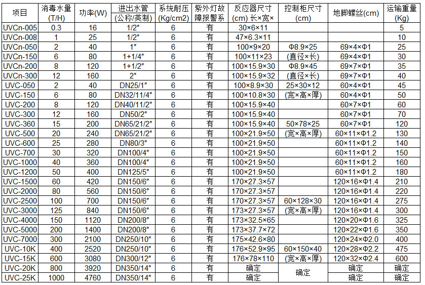 4、UVCn型號為螺紋接口,UVC型號為法蘭盤接口。